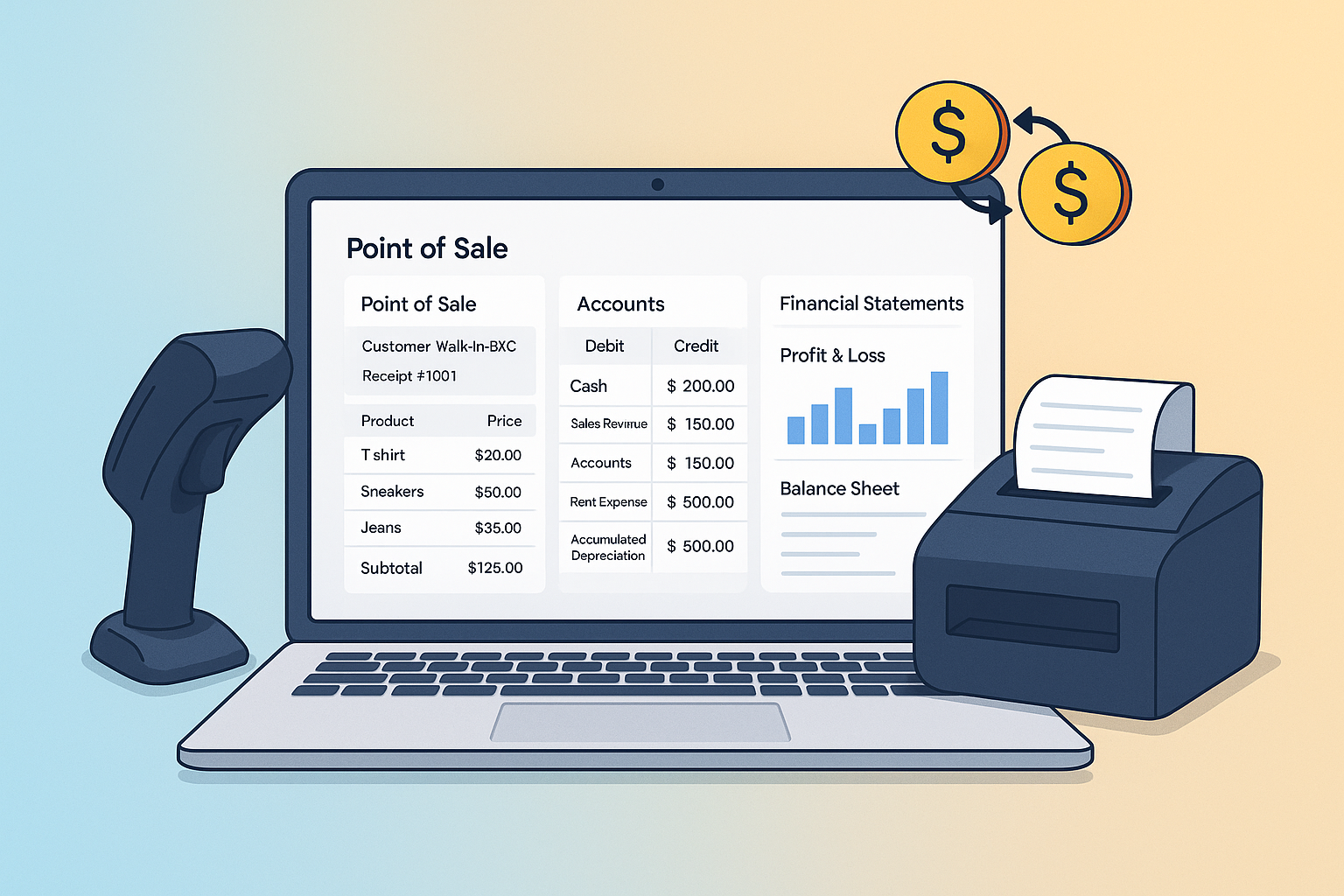 I designed and developed a Point of Sale (POS) and finance system that automatically handles accounting in the background while users focus on sales and purchases. Whenever a sale, purchase, or return is made in the POS, the system generates the correct double-entry journal records automatically, keeping the accounts always up to date and audit-ready.
